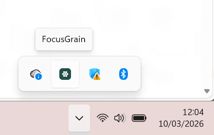 FocusGrain will appear as an icon in your system tray (bottom right of your screen)